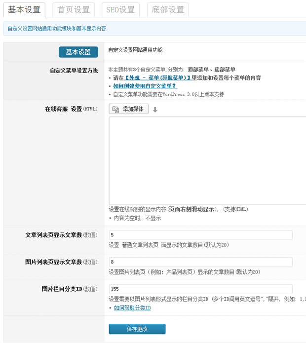 - 本高级主题支持多个自定义菜单设置(本主题共有多个自定义菜单,分别为: 顶部菜单、底部菜单)